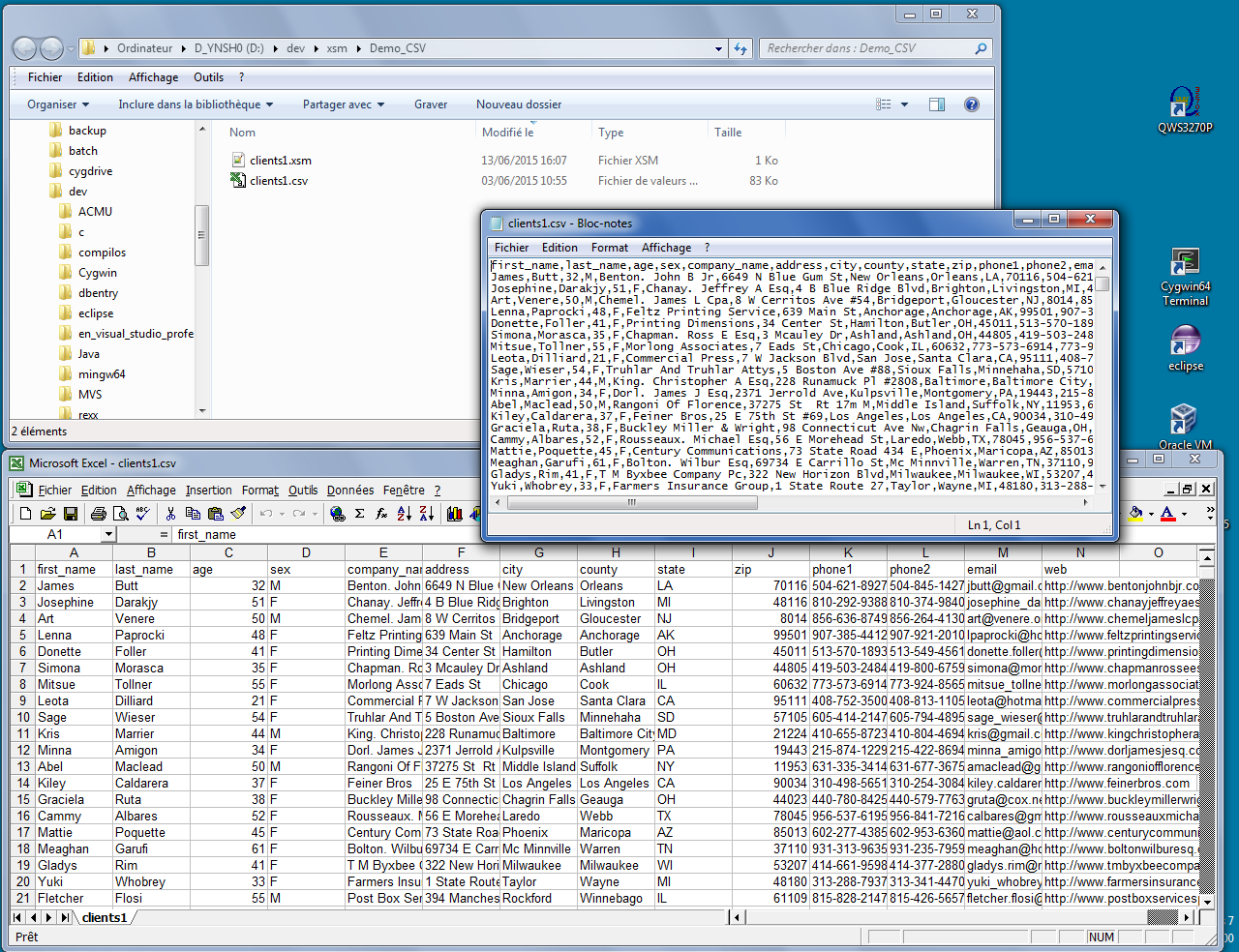 Step 1: Overview of input fileYour input file is composed of variable length zones, separated by comma (in this example).We can view it as is using Notepad, or in columns view using Excel: |