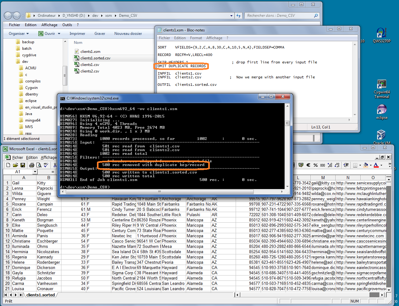 Vue d'ensemble de fusion / dédoublonnage / éclatement d'un fichier csv en quelques étapes simples